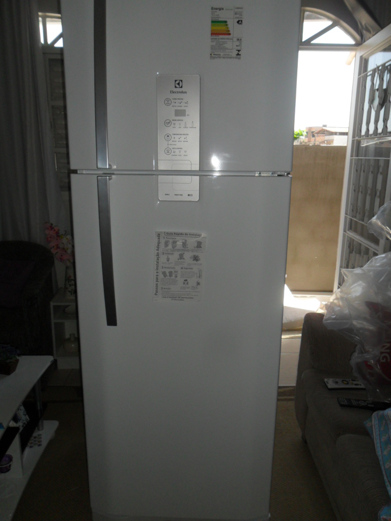AQUI MINHA GELADEIRA ,TIVEMOS QUE QUEBRAR UMA PAREDE E RETIRAR UMA PORTA QUE FICAVA NO CORREDOR PRA ELA PASSAR RSRSRSRS ,MAS JÁ ÍAMOS FAZER ISTO MESMO SÓ ADIANTOU O SERVIÇO,E FEZ UMA BAGUNÇA TERRÍVEL .